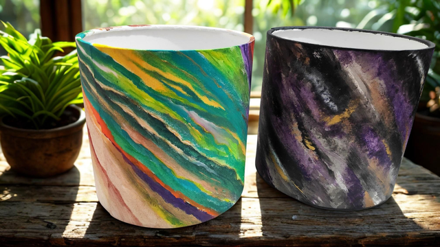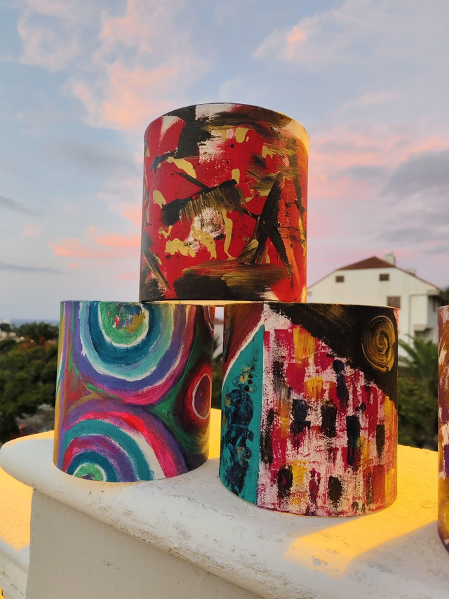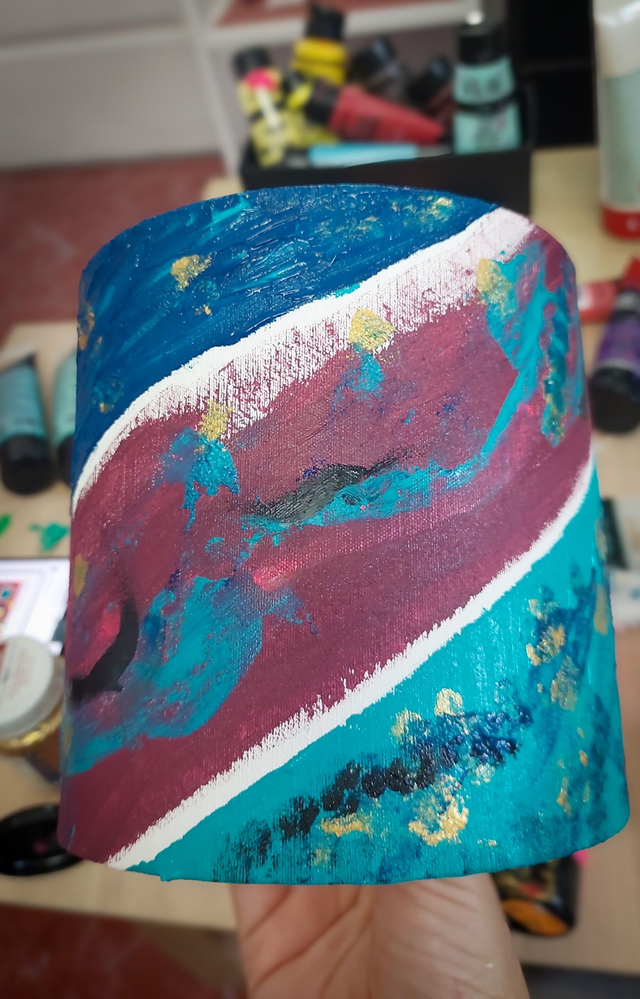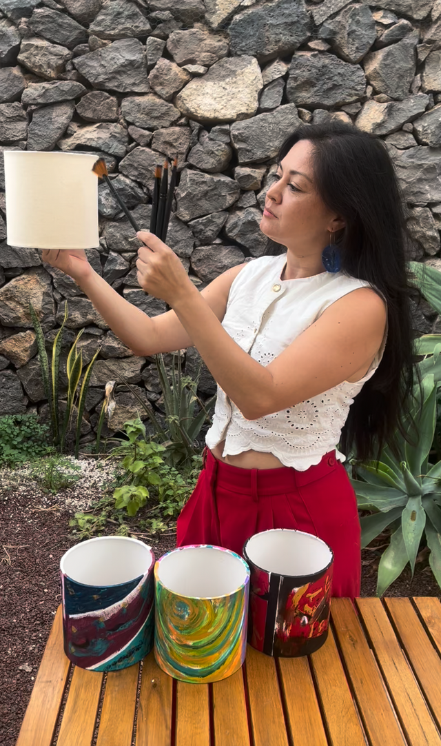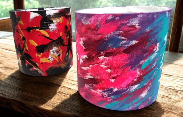 Pero este lienzo es especial: es una pantalla de lámpara tipo tambor (15×15 cm) que pintarás con un enfoque abstracto y experimental, explorando colores, formas y texturas a tu manera.
